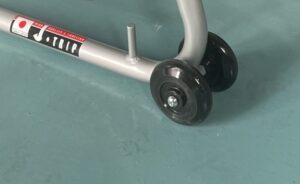 同社の定番ショートローラースタンド等と比べると分かるのですが、スタンドの後ろ側で補強パイプが重なっていないので、リアタイヤが外しやすいのです。