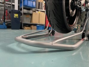 このスタンドは個人的にとても気に入っているのですが、発売されたのがJ-TRIPのスタンドの中では後発なのと、商品説明を見るとバイク屋向けの商品になっているので、使っている人は少ないかもですね。