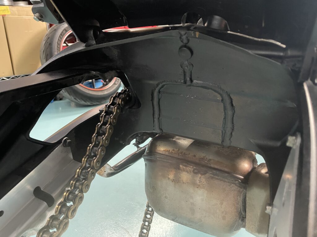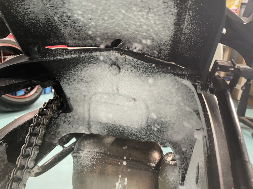 フェンダー裏側、スイングアーム裏側はさっぱりお掃除いたしましょう。