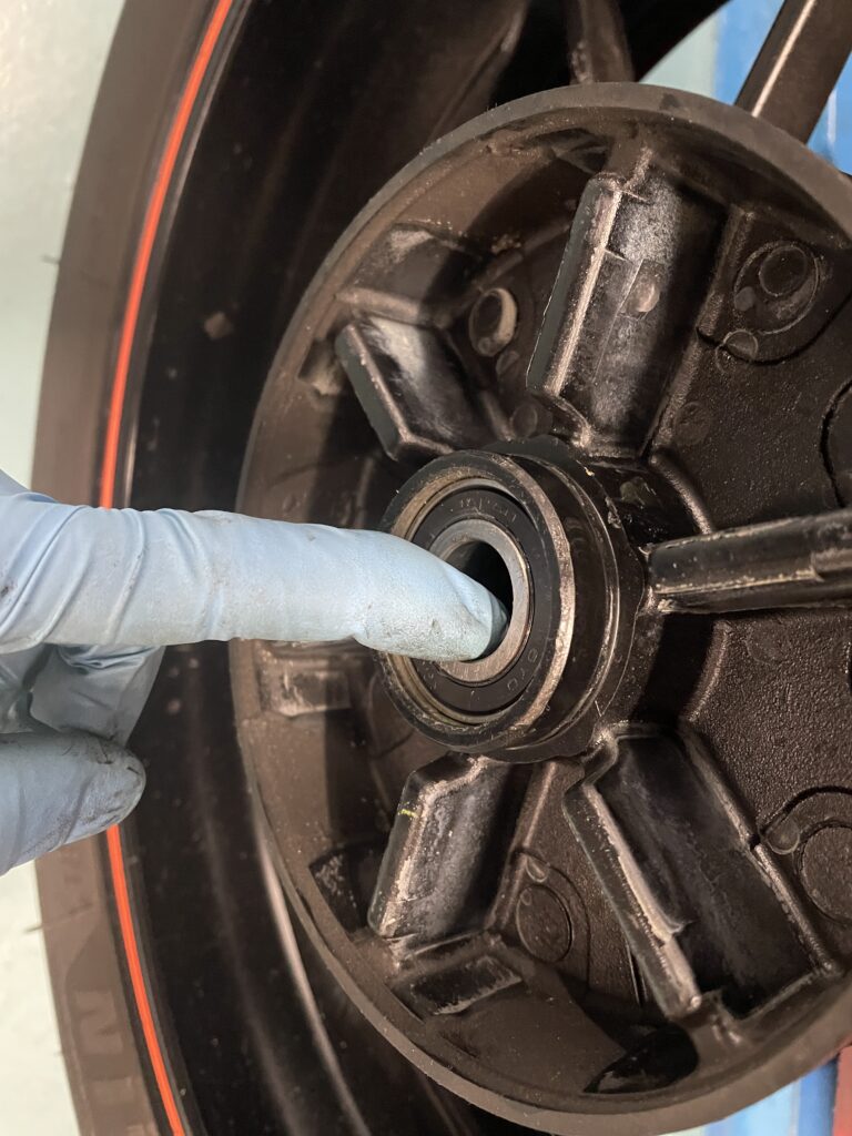 こんにちは!MT-09のリアホイール回り点検です。